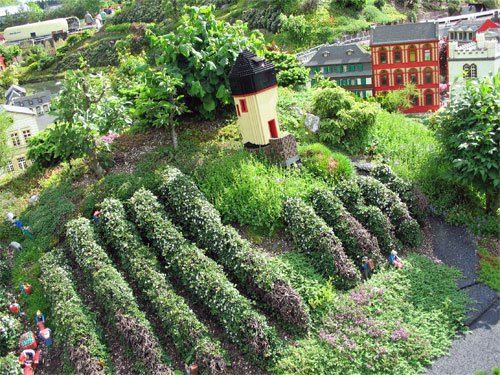 And upon closer looking you find out that all the plants are alive! Trees, shrubs, grass covers. Once you build the structures they stay there. They are glued together. But there are actual gardeners pruning and tending to all the green stuff. That makes everything look so real.